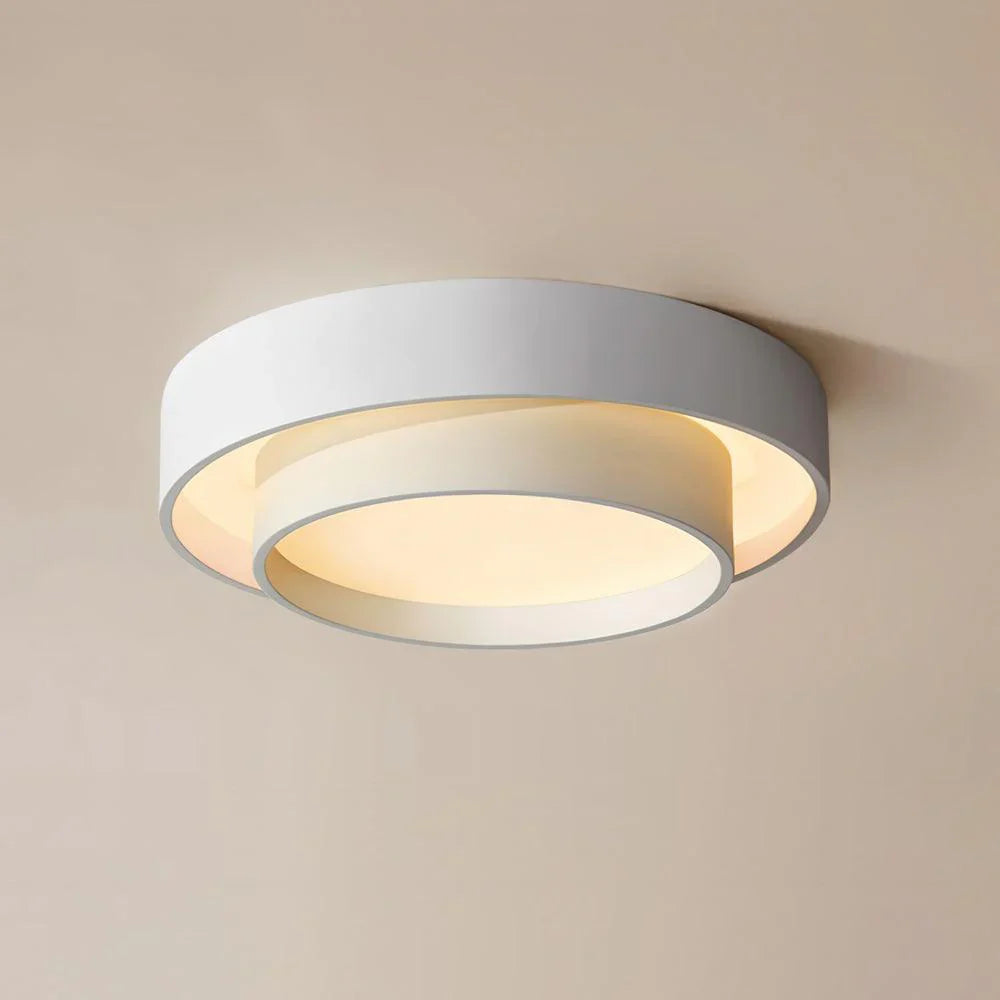 Ceiling-mounted round LED lamp with integrated light source and overlapping frame design. Suitable for indoor use in living rooms, bedrooms, and hallways.